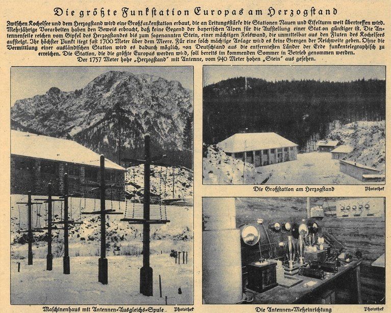 De 1920 a 1925, se construyó una gran estación de radio de onda larga cerca de Kochel/See en Baviera. La antena con una longitud de unos 3000m fue extendida desde la cima del Herzogstand hasta una montaña más baja.